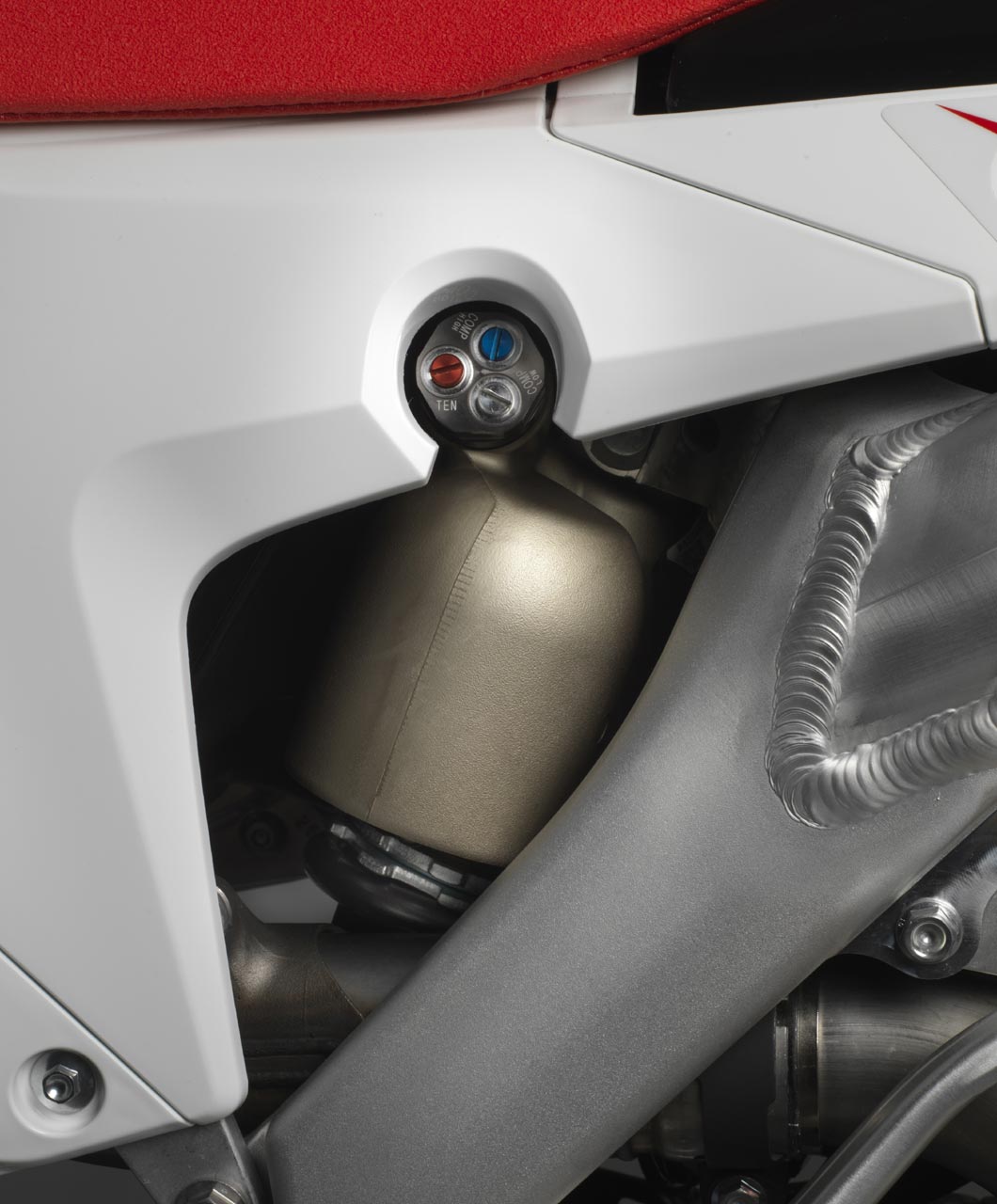 Analogamente alla forcella PSF2, le regolazioni per lo smorzamento delle alte e basse velocità in compressione sono posizionate sopra il serbatoio del gas per un facile accesso.