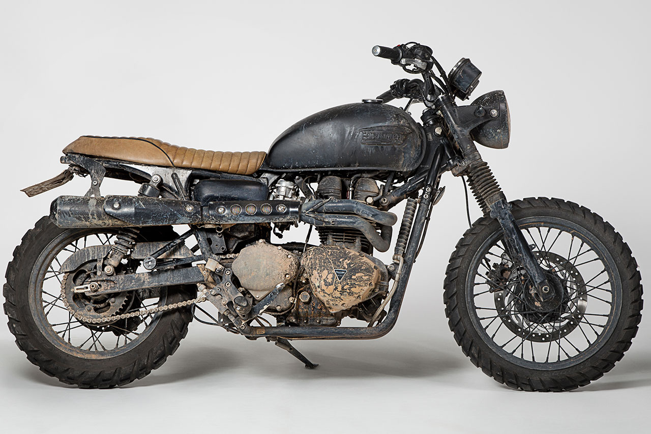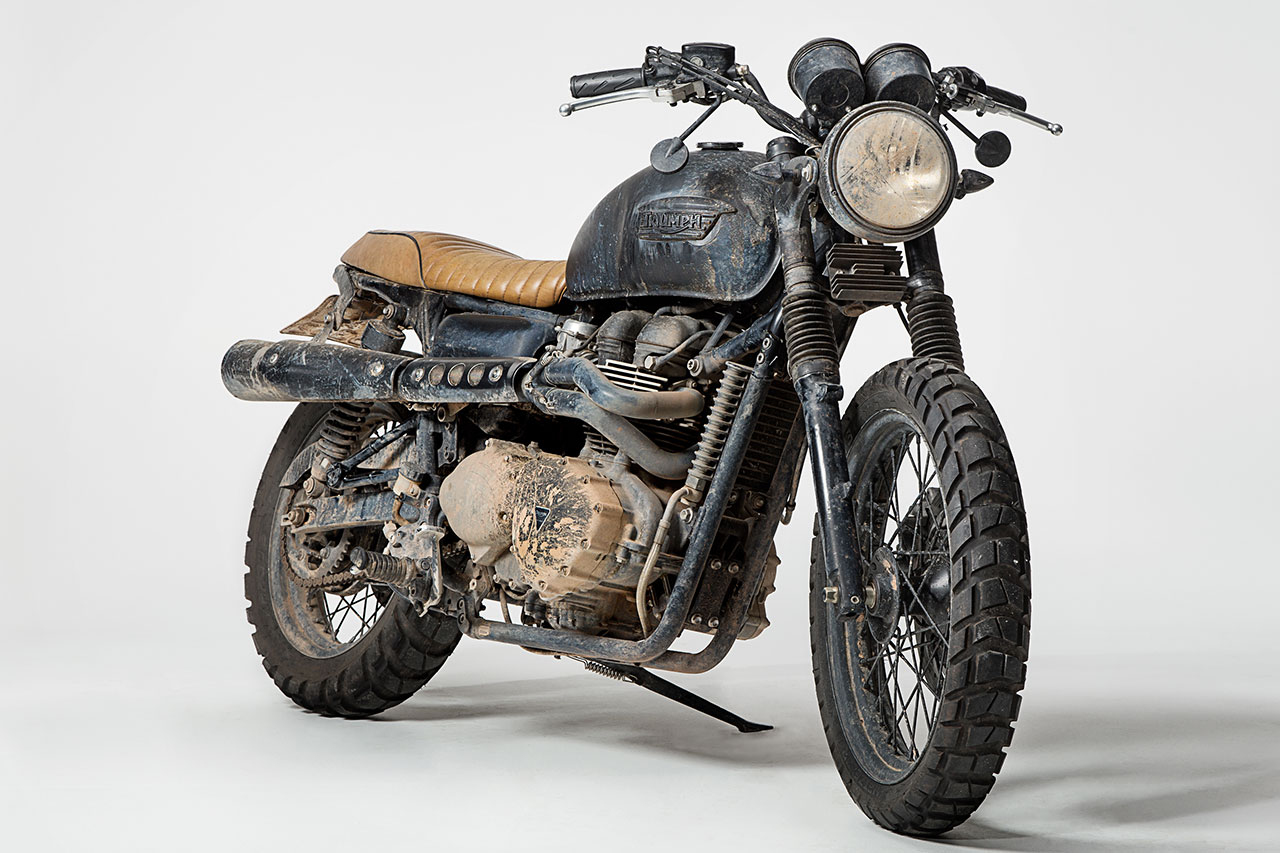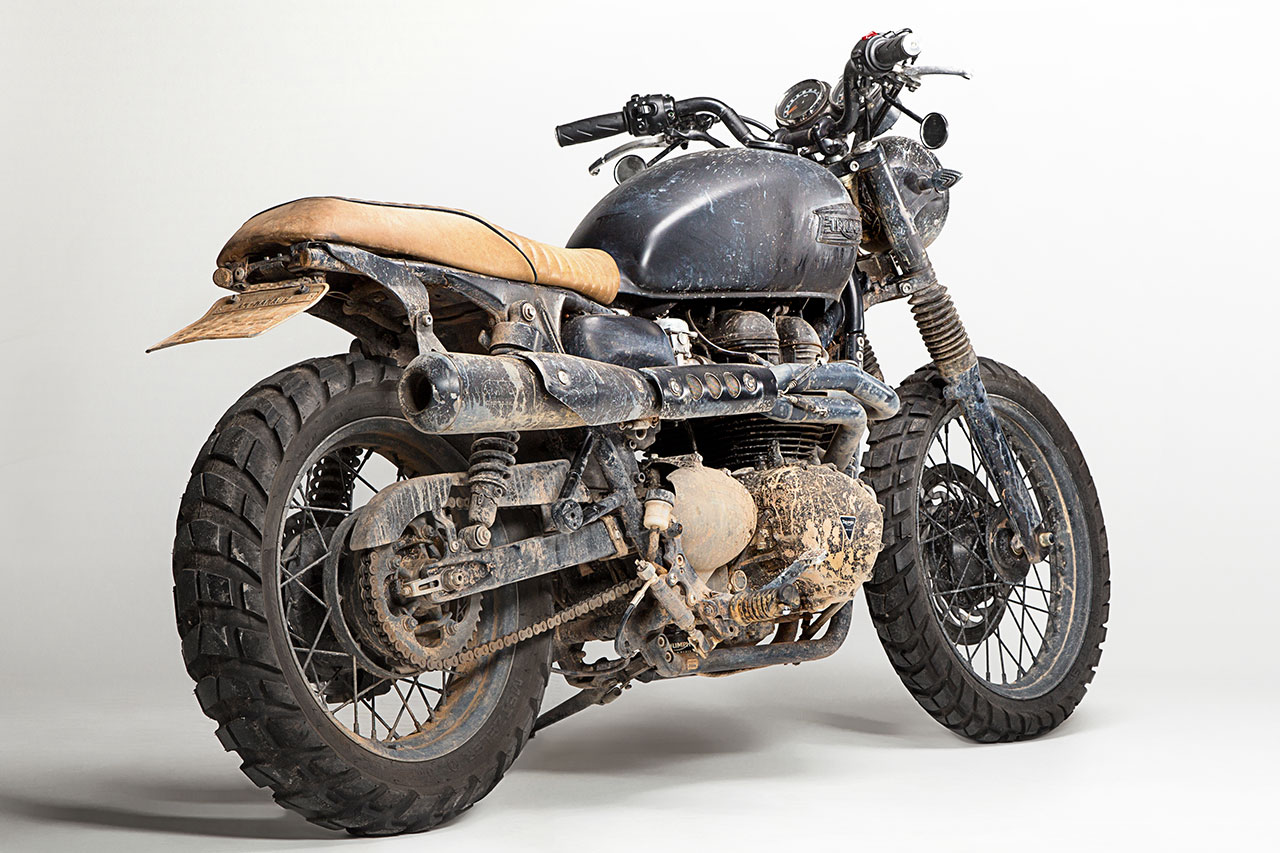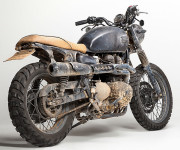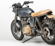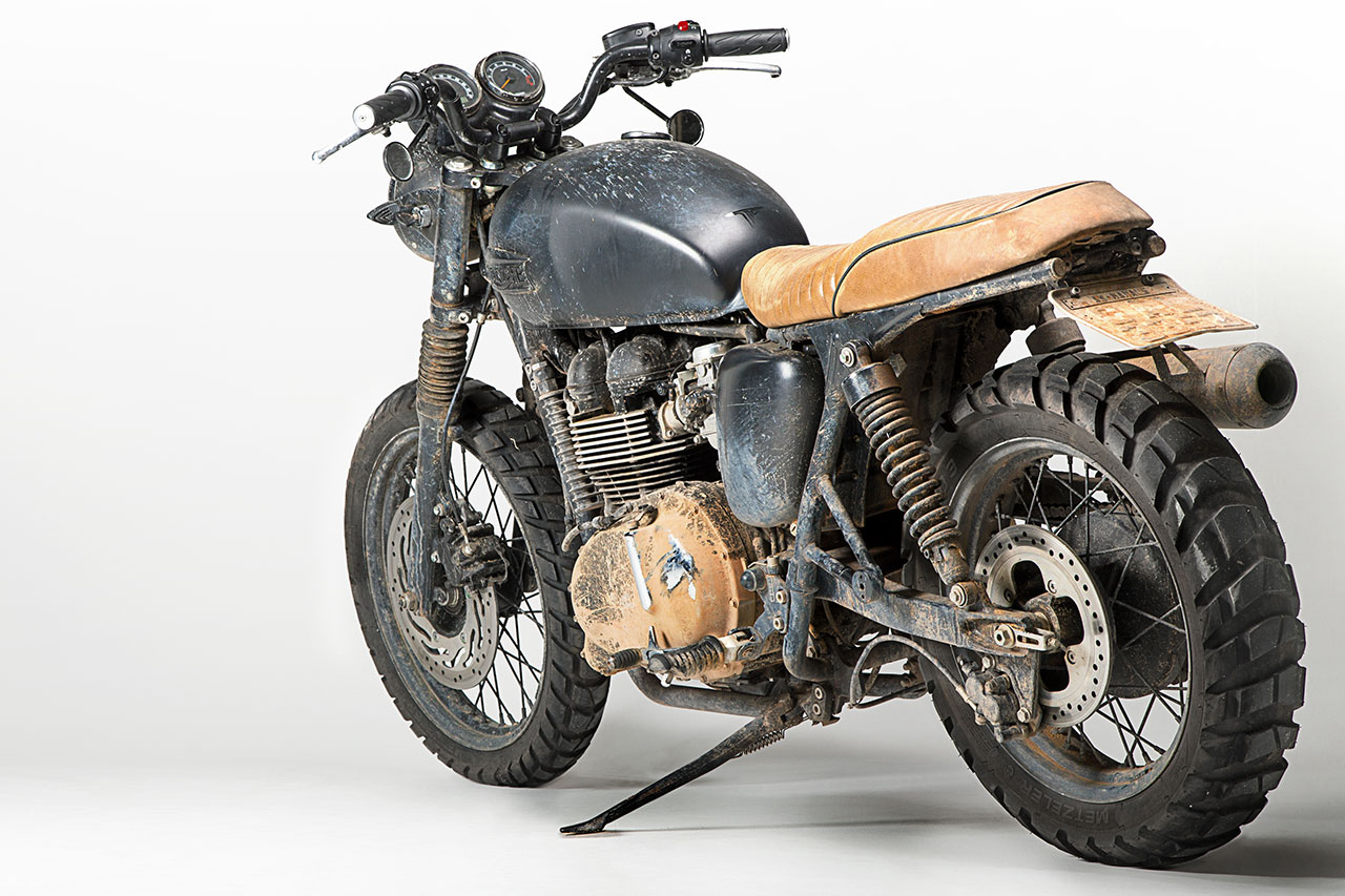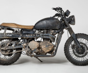 Partendo da una Bonneville T100, con dettagli cromati e una magnifica verniciatura two tone, la Brazilian Bonneville è frutto di un affiatato lavoro di squadra tra Triumph e i piloti, che ha preso vita tra il quartier generale Triumph di Hinckley (UK) e il nuovo stabilimento di Manaus, in Brasile. Lo scarico alto, l’assenza di parafanghi e i grossi pneumatici da off-road lascerebbero pensare a un derivato della Scrambler, ma dopo attenta osservazione si capisce che si tratta di un esemplare unico. Anche il largo manubrio e la posizione di guida rilassata contribuiscono a creare una moto che è in parte desert sled, in parte Scrambler, in parte Bonneville e in parte qualcosa di completamente nuovo. Serbatoio e sella personalizzati sono stati realizzati da uno dei più famosi preparatori di San Paolo.