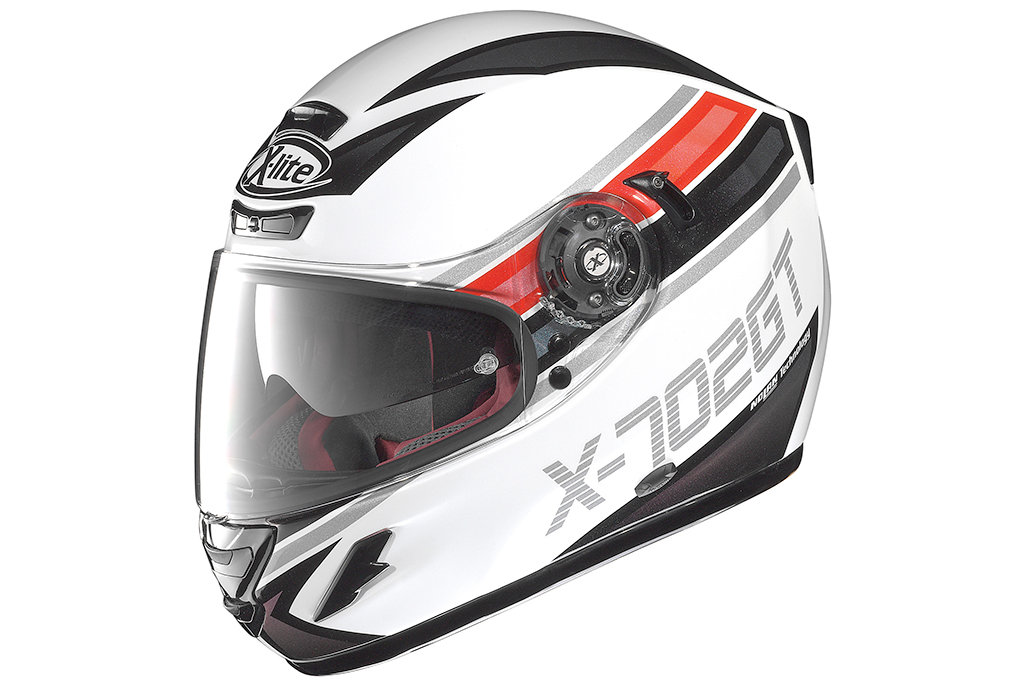 X-702 GT è dotato di visiera a sgancio rapido particolarmente ampia che permette al motociclista di fruire di un ampio campo di visione. La visiera si caratterizza, inoltre, per il meccanismo DOUBLE ACTION che consente la funzione di blocco visiera per impedirne l’apertura accidentale a velocità elevate oppure disappannamento della visiera (a bassa velocità o in caso di sosta, mediante apertura minima della stessa).