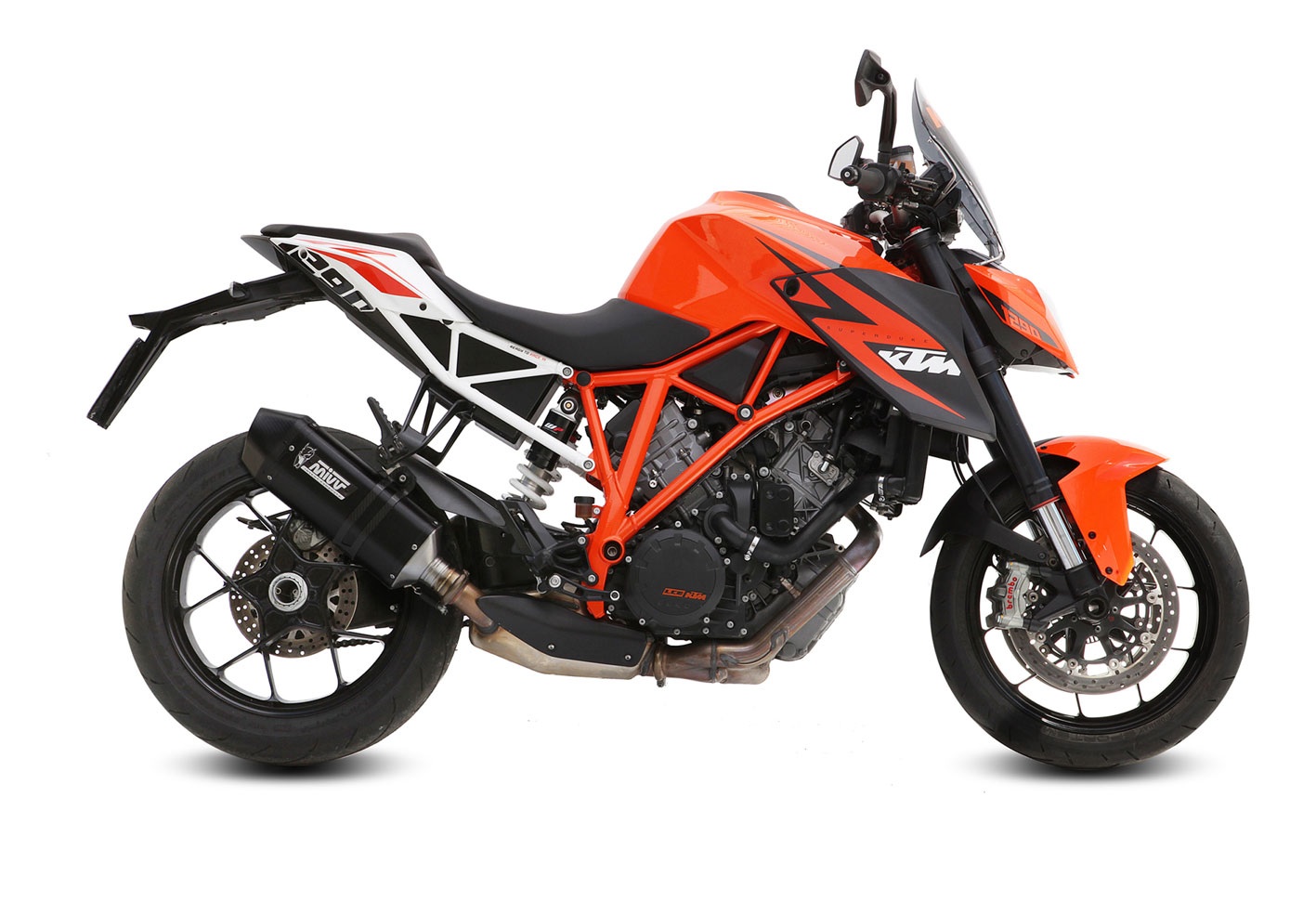 Chi ama le nude rimane a bocca aperta davanti alla nuova ammiraglia di KTM. Tutto in lei esprime potenza e non mancano marcati riferimenti al mondo delle corse, non soltanto di tipo estetico.In pratica gli stessi parametri che indirizzano la ricerca di MIVV, nella realizzazione dei terminali di scarico, up-grade e allestimenti dedicati.
