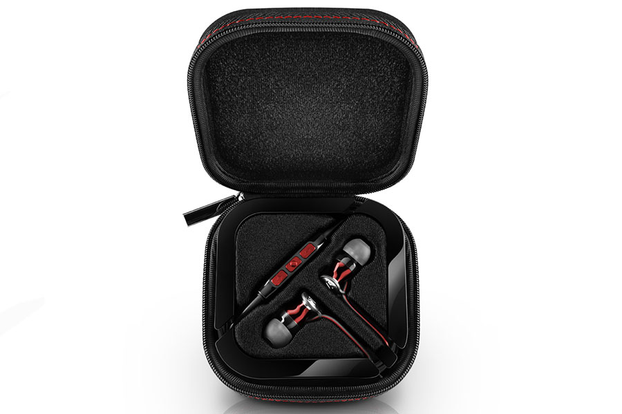 Disponibili in nero lucido con dettegli in rosso, gli auricolari MOMENTUM In-Ear hanno un design ergonomico e innovativo che esprime un look urbano e minimalista.