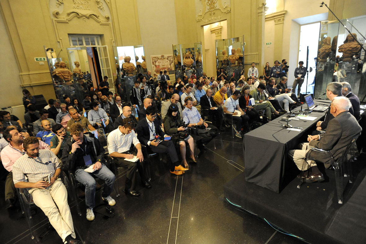 Alla manifestazione prendono parte anche una novantina di giornalisti provenienti dai principali mercati al mondo nei quali è presente la Maserati – dagli Stati Uniti (primo mercato per unità vendute) alla Cina (secondo mercato, con il maggiore tasso di crescita), da Regno Unito, Germania e Italia (che si contendono il primato di maggiore mercato in Europa) ad Australia e Giappone. In mattinata, la stampa internazionale aveva visitato lo stabile nel quale, in via de’ Pepoli n. 1 a Bologna, la Maserati aveva iniziato la propria attività il 1° dicembre 1914. La stampa si è successivamente incontrata con i discendenti diretti dei fondatori della Maserati: Carlo e Alfieri Maserati, rispettivamente figli di Ettore ed Ernesto Maserati, che nel dicembre del ’14 affiancavano il fratello Alfieri all’inizio di quella avventura centenaria che celebriamo in questi giorni.