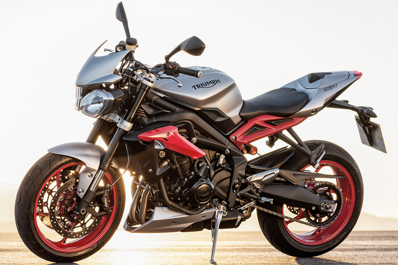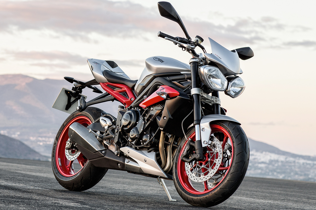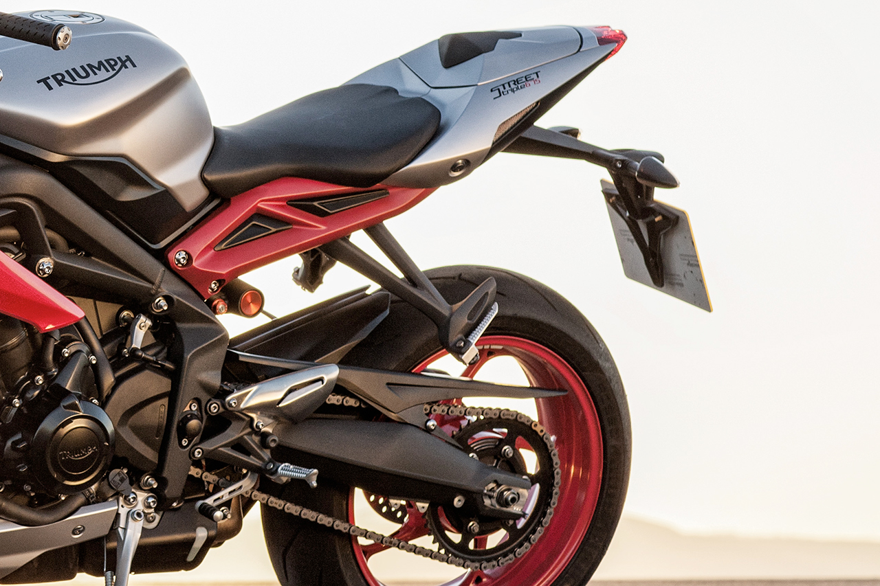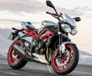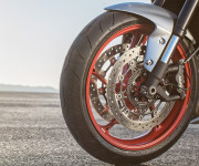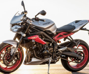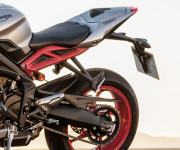 Gli ingredienti per una vera e propria special prodotta in serie ci sono tutti e così la Triumph Street Triple Rx sfodera cerchi, decalcomanie e un puntale sottocarena così come il cupoloni in tinta Diablo Red, un telaio in alluminio a doppia trave con nuova geometria e un comparto freni e sospensioni di tutto rispetto.