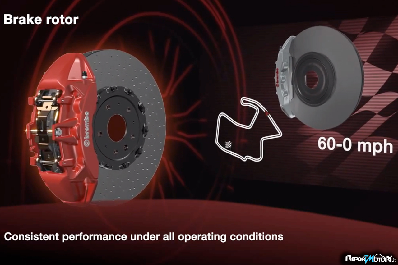 In un video 3D promosso dalla stessa Brembo, è evidente quale novità e quanta derivazione dal mondo delle corse, l’azienda italiana abbia portato nella produzione in serie, seppur dedicandolo ad una vettura ad altissime prestazioni.