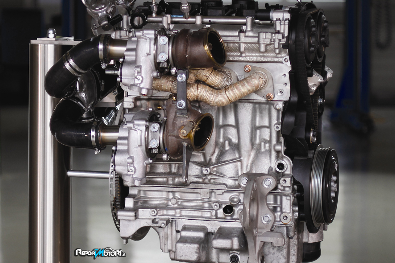 L’unità propulsiva Volvo High Performance Drive-E, utilizza due turboalimentatori paralleli che vengono alimentati da un turbocompressore elettrico; l’aria compressa sprigionata da questa unità anziché esser incanalata nei cilindri viene riutilizzata per far funzionare i due turbo paralleli. In questo modo il carburante viene convogliato da una pompa del carburante doppia che opera ad un pressione di ben 250 bar!!! Il risultato è che il turbo lag è praticamente inesistente e la coppia è disponibile in maniera progressiva.