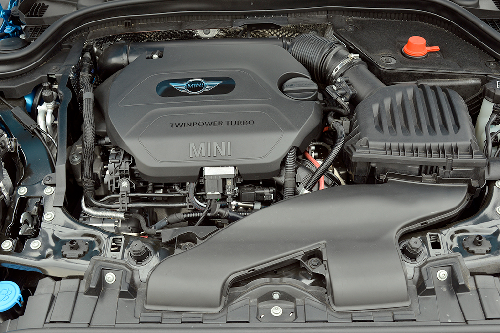 MINI Cooper S a 5 porte: motore quattro cilindri a benzina con tecnologia MINI TwinPower Turbo (turbocompressione, iniezione diretta di carburante, comando valvole variabile, regolazione variabile degli alberi a camme),
