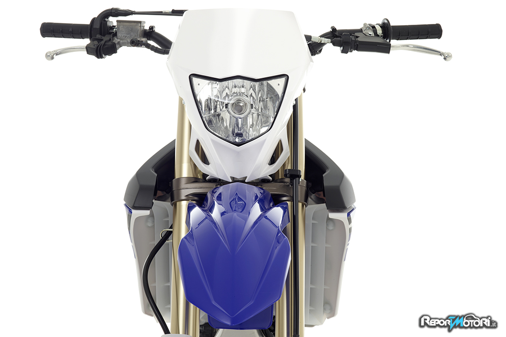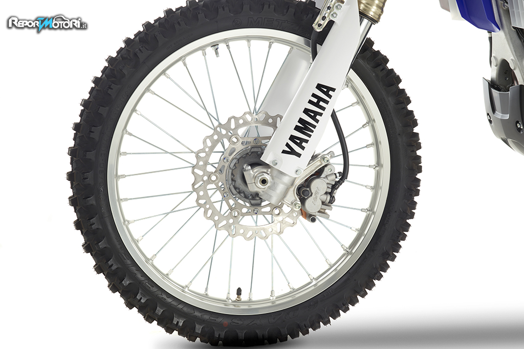Ciclisticamente la nuova Yamaha WR250F dispone di una innovativa forcella con camera aria-olio separate! Caratterizzata da steli rovesciati, questa conformazione permette alle camere di minimizzare la formazione di bolle d’aria; queste si formano durante i contraccolpi subiti dalla focena, assicurando così un funzionamento più lineare ed un’ottima direzionalità dell’avantreno.