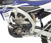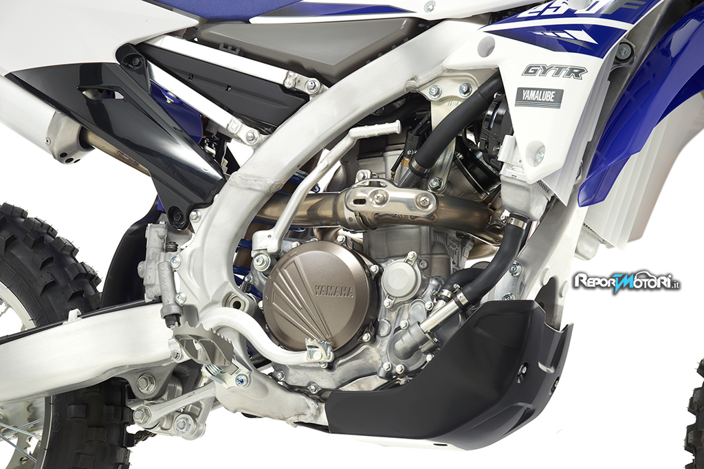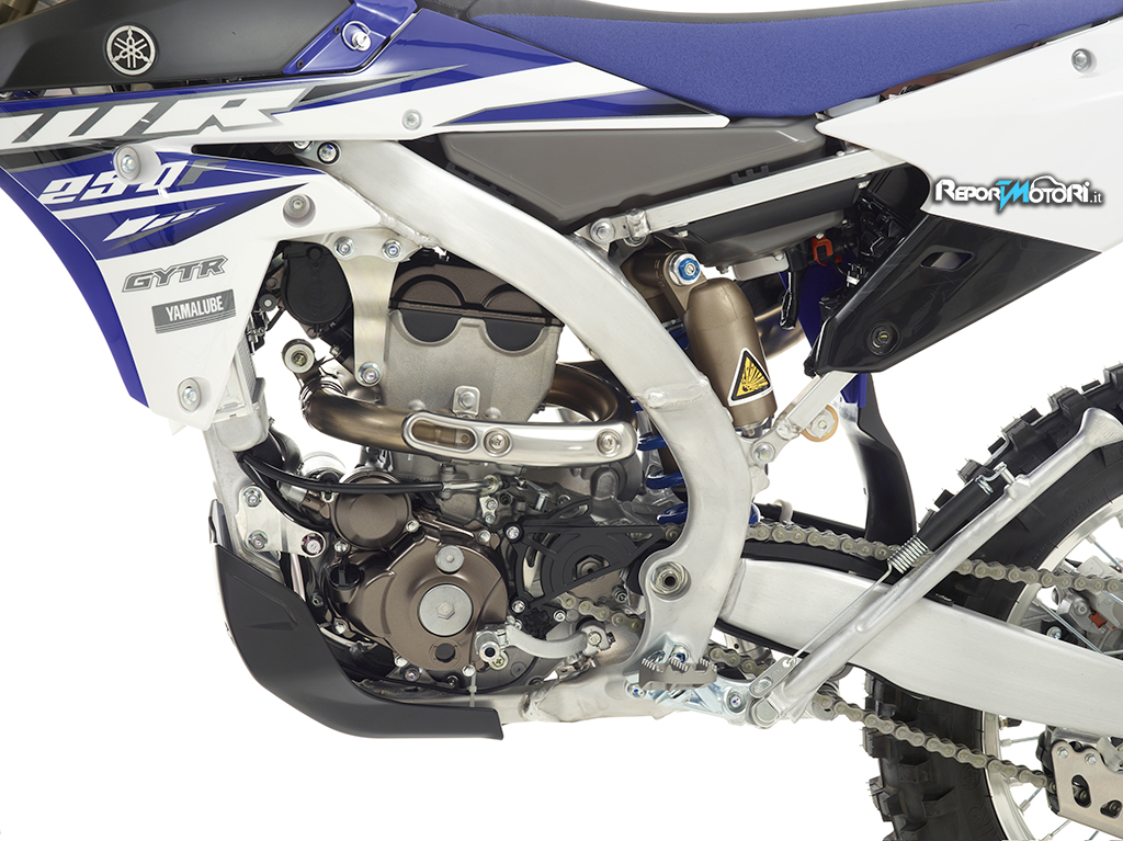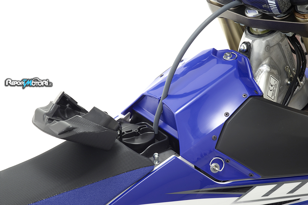 E’ una soluzione tecnicamente molto complessa, che adotta il cilindro rovesciato della WR250F e che consente di adottare un condotto di aspirazione diritto, aumentando così l’efficienza del motore.