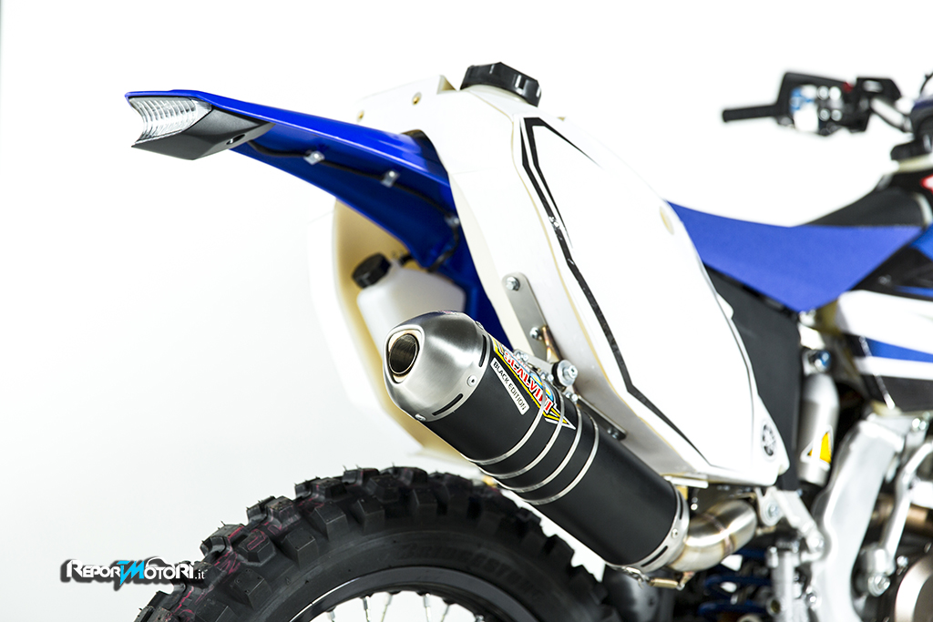 Il terminale di scarico è stato ridisegnato dopo diversi test al banco prova per migliorare ulteriormente le prestazioni del motore ai bassi e agli alti regimi e la stessa centralina ha subito delle modifiche per rendere al meglio nei percorsi Rally dove le velocità sono mediamente molto più alte rispetto all’enduro classico.