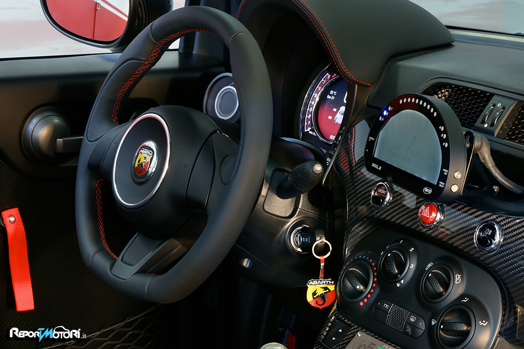 L’aspetto non lascia dubbi, siamo al cospetto di una 500 solo nelle sembianze, seppur la carrozzeria è ” analibolizzata ” e seppur tutto ciò che la compone è stato frutto di un’attenta opera di alleggerimento, con il frontale, cerchi, strumentazione, scarico, sospensioni totalmente riviste in virtù di un unico scopo: emozionare il guidatore.