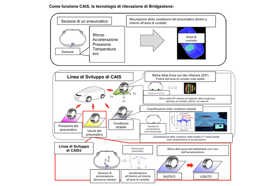 Bridgestone Corporation ha annunciato di aver sviluppato una nuova tecnologia che stima l’usura dei pneumatici e lo spessore del battistrada. Questa tecnologia innovativa è basata sul concetto di CAIS1 Contact Area Information Sensing.