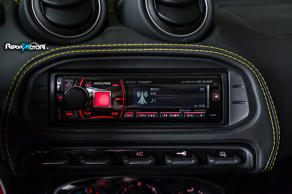 Una novità nella gamma Alfa Romeo 4C è rappresentata dall’aggiunta dell’esclusiva radio Alpine. Dedicata agli appassionati di sistemi audio, garantisce un suono eccellente insieme alla possibilità di connessione multimediale: connettività telefonica Bluetooth, streaming Bluetooth, porta USB, interfaccia iPod e lettura CD/MP3. Inoltre, la radio Alpine fornisce accesso a radio HD e a SiriusXM Radio, per una qualità del segnale audio ad alta definizione.