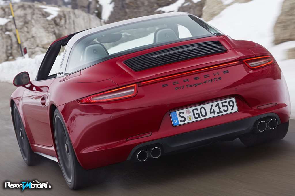 Da sottolineare che sulla Porsche 911 Targa 4 GTS, è presente l’impianto di scarico sportivo: dai quattro minacciosi terminali neri, fuoriescono ad ogni pestata di gas, melodie da……. urlo!!