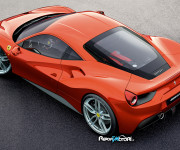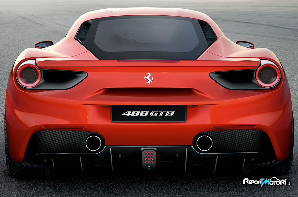 Disegnata dal Centro Stile Ferrari, la Ferrari 488 GTB, esprime il proprio carattere innanzitutto attraverso la scultura della fiancata. La sua forte personalità si sostanzia con la presenza di un’ampia presa d’aria modellata con un movimento a “colpo di frusta”. La caratteristica sgusciata, che mostra reminiscenze della 308 GTB originale, è attraversata da un profilo alare che divide il canale d’ingresso in due. Il frontale è dotato di un largo alettone “a cassetto” con profili sovrapposti per migliorare l’efficienza termica dei radiatori, sospeso e staccato dal volume . Al centro due piloni sono abbinati a un deflettore che incanala aria verso il fondo piatto. Il posteriore, largo e basso, è anch’esso dominato dalle soluzioni aerodinamiche, con l’innovativo spoiler “soffiato” nella parte superiore, che genera carico verticale senza aumentare la resistenza, associato ad un diffusore aggressivo, dotato di portelle aerodinamiche attive e disegnato intorno ai due scarichi rialzati. Nuovo il disegno dei fanali LED ad anello circolare.