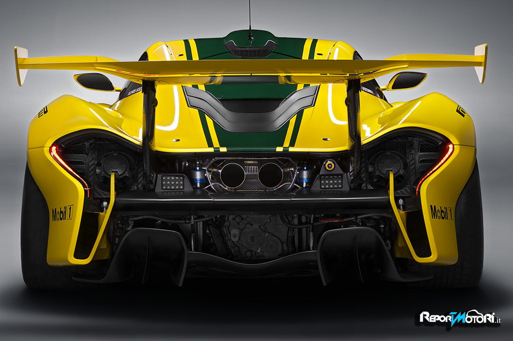 Larga più di 80 millimetri rispetto alla P1, forte di un’estetica aggressiva resa ancora più incisiva dalla presenza di un pronunciato spillare anteriore, la McLaren P1 GTR è anche più bassa rispetto alla sorella stradale di 50 millimetri, complice anche i chi da 19 pollici che calzano pneumatici Pirelli slick.