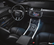 Le novità presenti nell’abitacolo comprendono: nuovi sedili e pannelli delle portiere, nuovo sistema di infotainment accessibile tramite un touchscreen da 8″, nuovi materiali e colori quali il Lunar Ice, il Vintage Tan e il Dark Cherry (solo per Autobiography) che fanno da complemento alle audaci forme architettoniche dell’Evoque.