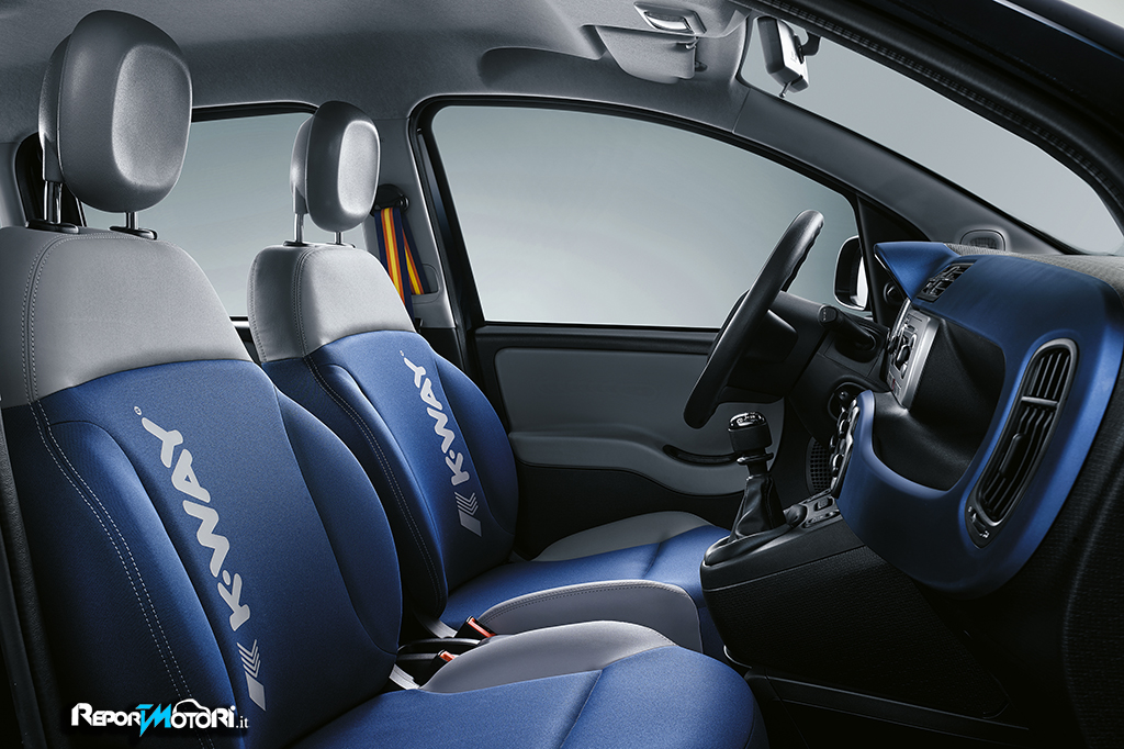 Completa la dotazione di serie della Fiat Panda K-Way: ABS, EBD, 4 airbag conducente, passeggero e window bag), radio CD con lettore MP3 e sei altoparlanti, sistema Start&Stop ( disponibile solo sui motori TwinAir e MultiJet ), indicatore cambio marcia e sistema Blue&me con comandi al volante.