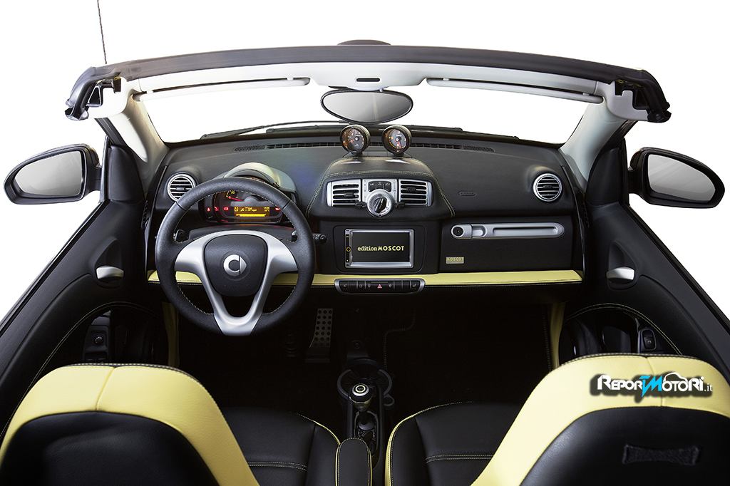 Prodotta in appena 100 esemplari la smart fortwo edition MOSCOT si caratterizza per un allestimento esclusivo e per una colorazione originale, nero e gialla.