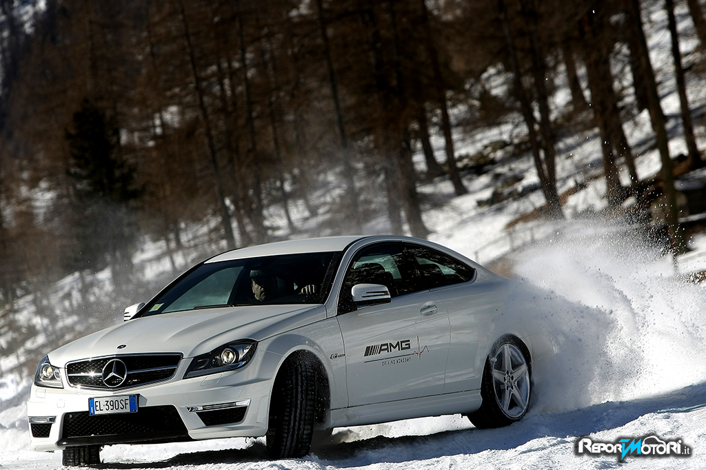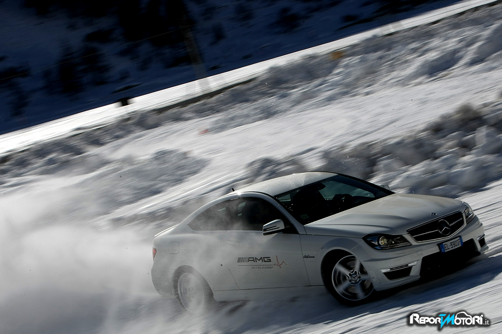 A differenza del corso AMG Base, il Corso AMG Neve, consente di approfondire le tecniche di guida sportiva su fondi a ridotta aderenza, permettendo di sfruttare le potenzialità delle vetture AMG anche su neve e ghiaccio. L’introduzione teorica, oltre ai fondamenti della fisica, verte soprattutto sui temi della tecnica di sterzata in curva, del punto di frenata e, più in generale, delle differenze nel comportamento dinamico dell’auto sul ghiaccio. Al centro di questa fase didattica anche il funzionamento dei sistemi di assistenza alla guida, le norme di sicurezza ed il comportamento idoneo per garantire uno svolgimento sicuro del training. La sessione in pista permette di testare in prima persona quanto appreso in aula. Nel 2015 sono previste due giornate di corso Neve presso l’impianto Snow Ice di Cortina D’Ampezzo.