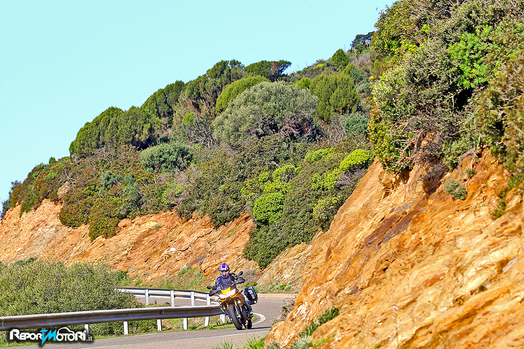 Il test drive della nuova Caponord 1200 Rally si svolge in Sardegna, un’isola bellissima, che si presta alla perfezione per saggiare le doti stradali dell’ultima nata in casa Aprilia; curva dopo curva, il feeling diventa sempre più forte, apprezzi il motore che è sempre pronto a regalarti gioie e la tenuta di strada, nonostante le coperture adatte anche all’offroad abbiamo un ritmo elevato, l’elettronica qui è presente e fa ampiamente il suo dovere!
