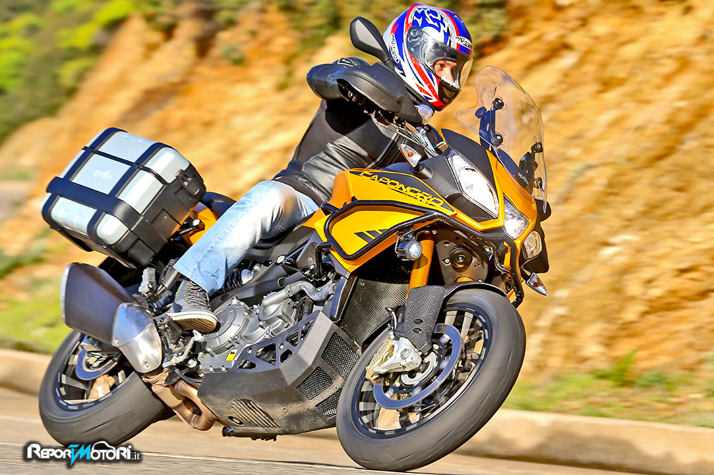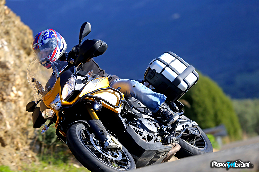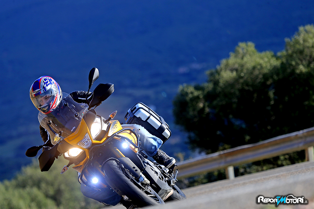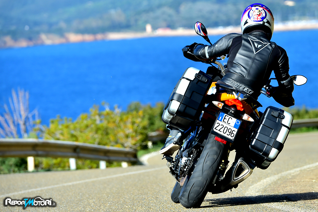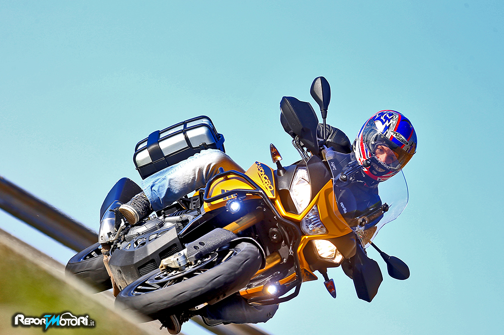 Il motore è carico di coppia, in curva imposti la piega scendendo con una facilità incredibile, ed anche con il traction control in posizione off, il grip è sempre da primato.