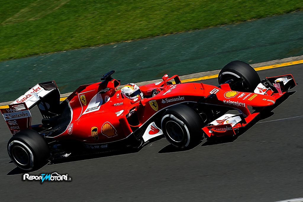 Alla guida della nuovissima Ferrari SF15-T, Vettel fa segnare un tempo di 1.28,412, precedendo di un soffio il suo compagno di squadra Kimi Raikkonen .