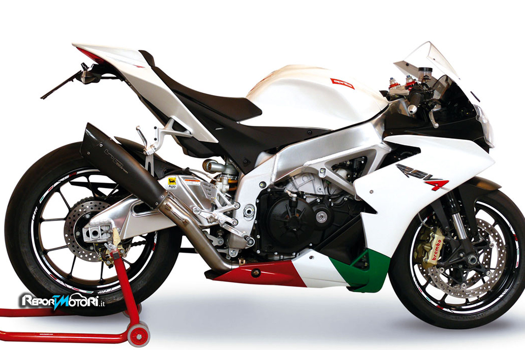 Nella versione omologata (dotata di Db Killer estraibile), lo scarico Evoxtreme dedicato alle Aprilia RSV4 e Tuono V4, ha un peso di kg. 1,100.