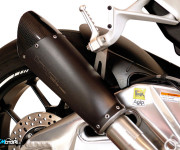 Le forme originali dell’Evoxtreme si integrano perfettamente con la linea dell’Aprilia RSV4: disponibile in acciaio ( black o silver ), il nuovo scarico firmato Hp Corse ora è dotato di un fondello in fibra di carbonio, un particolare che si ispira ancora una volta al mondo delle corse.