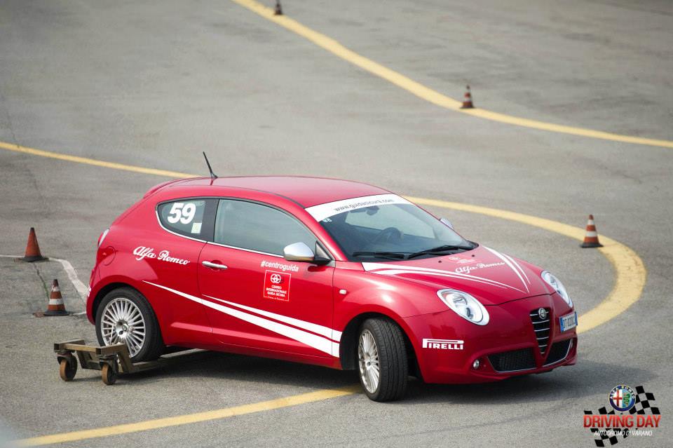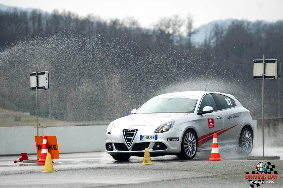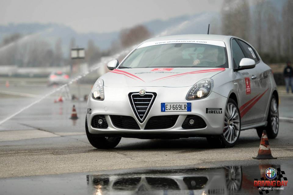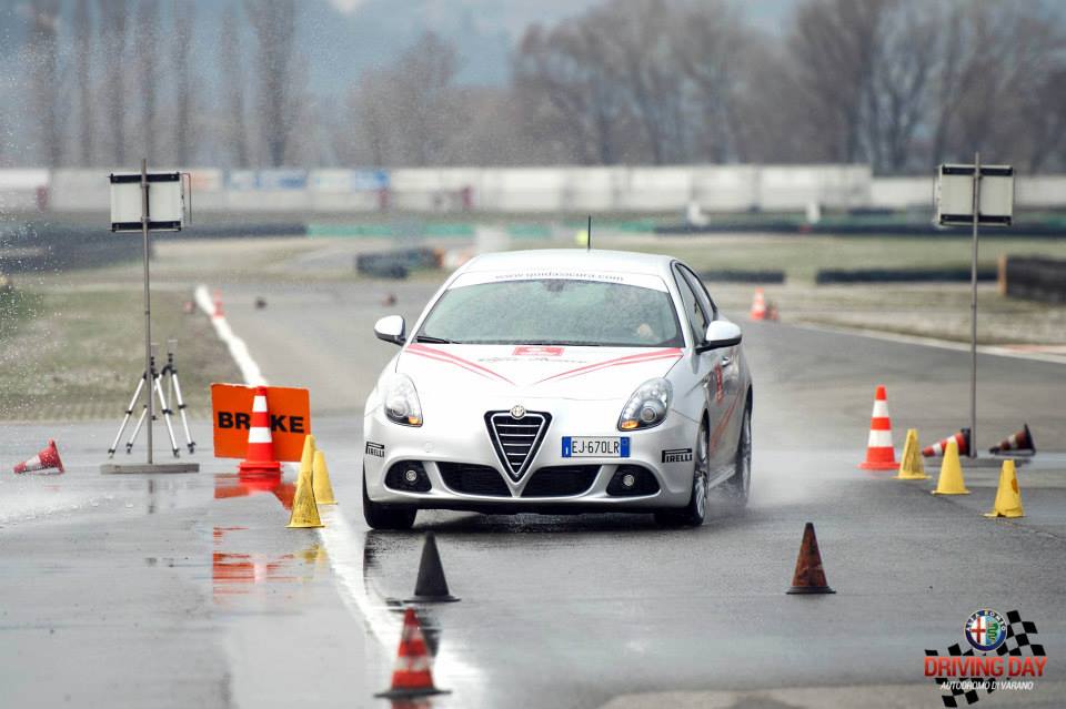 L’adrenalina sale, la voglia di fare la migliore performance è nella mente di tutti, all’Alfa Driving Day si impara a guidare sicuri, ma anche a crescere ed aumentare la propria abilità nella guida: la vettura impiegata per questo test è la Giulietta, si parte, prima seconda e….al cartello “ Brake “ si frena saggiando la velocità di entrata dell’ABS ma anche la perfetta ripartizione dei pesi della vettura!