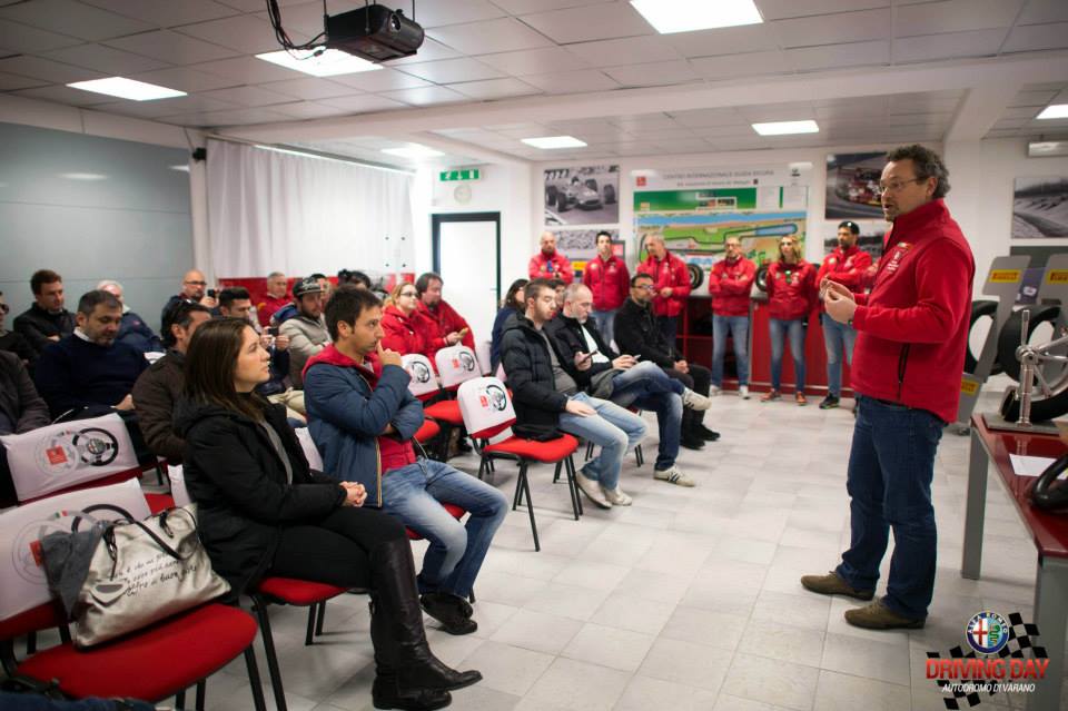 Il centro di Guida Sicura di Varano ci accoglie con tutto il suo calore, la passione con cui ogni istruttore accoglie il suo gruppo di allievi è strabiliante, il sorriso colora i loro volti, la passione nel trasmettere ciò di cui sono portatori è forte e lampante: “ Ci si può divertire alla guida delle nostre Alfa Romeo, in tutta sicurezza, perché esser padroni della propria auto, aumenta la sicurezza stradale “ !