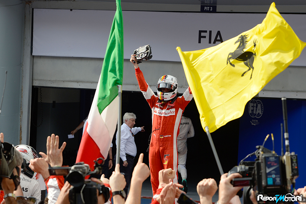 Sebastian Vettel: “Grande gara e bellissima macchina! Sì, all’inizio ho parlato in italiano, ma oggi è davvero un giorno speciale. Non trovo nemmeno le parole, per un sogno d’infanzia che diventa realtà, anzi per tanti sogni messi assieme. Guardare giù dal podio e vedere i meccanici, gli ingegneri, tutta la squadra, sentire gli inni tedesco e italiano è stato fantastico. In squadra c’è sempre stata una bella atmosfera, che migliora giorno dopo giorno. Per oggi l’importante è godersi il momento e festeggiare. Non mi è capitato spesso di cambiare squadra in passato, quindi vincere per un team nuovo è un sollievo. Da quando sono in Ferrari ho sempre sentito una grande accoglienza e insieme abbiamo lavorato per migliorare. Il potenziale è enorme, è bello vedere il grande passo avanti fatto in inverno. Pur con tanti cambiamenti (compreso un pilota…) che non sono mai facili, ognuno ha visto solo il lato positivo. Niente a che vedere con l’anno scorso, quando pur avendo una buona macchina non ne ero mai venuto a capo. Con la Ferrari ho avuto un buon feeling fin dall’inizio. Questo è un giorno speciale perché sia io che il team non vincevamo da un po’. Vorrei finire sempre in questa posizione ma dobbiamo essere realistici, la Mercedes oggi ha faticato un po’ ma hanno un pacchetto fenomenale e il nostro obiettivo resta quello di ridurre un po’ il divario ad ogni gara e assicurarci di essere sempre subito dietro le loro spalle”.