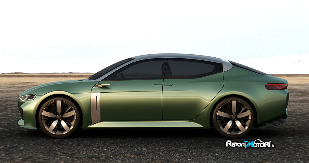I cerchi da 20 pollici e le maniglie portiera a filo carrozzeria, completano un quadro stilistico decisamente interessante anche se ancora non è dato sapere se e quando la KIA Novo sarà prodotta.