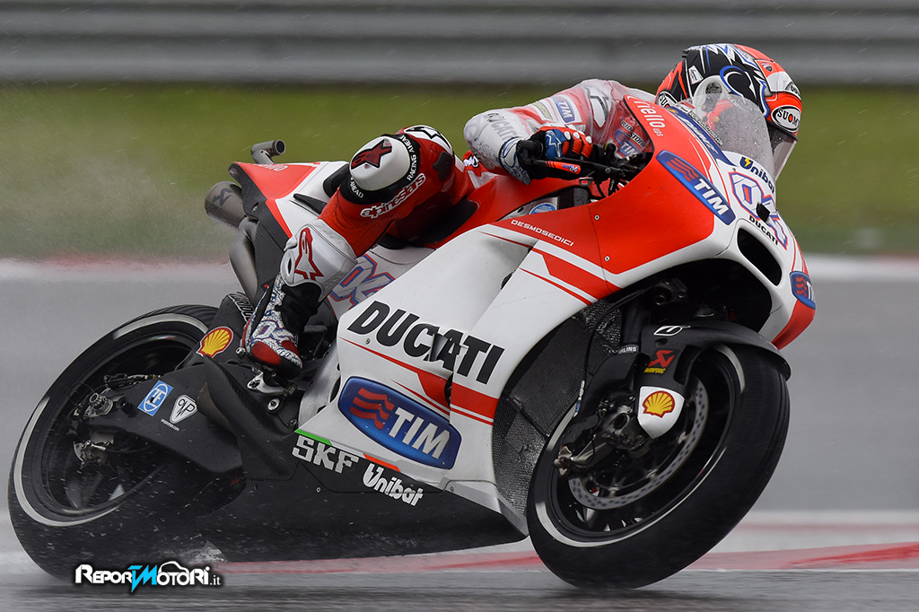 Andrea Dovizioso: ” E’ stata una giornata tutto sommato positiva, anche se le condizioni erano particolari, però siamo contenti perché siamo stati veloci sia con la pioggia che sull’asciutto. Oggi pomeriggio l’obiettivo primario era stare nei primi dieci perché domani mattina molto probabilmente pioverà. Purtroppo non abbiamo potuto lavorare molto con l’asciutto, ho fatto solo quattro giri e il mio feeling con la moto non è ancora ottimale. Dobbiamo migliorare diversi aspetti, sia sul bagnato che sull’asciutto, se vogliamo poter lottare per il podio domenica, ma i limiti della moto sono molto simili nelle varie condizioni meteo, e quindi in ogni caso domani potremo lavorare per provare a risolverli.”