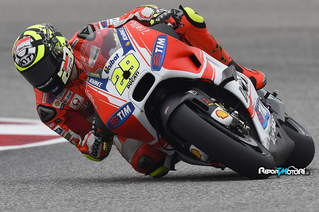 Più complicata la giornata di Andrea Iannone. Il pilota di Vasto infatti ha terminato le FP3 in undicesima posizione e quindi ha dovuto prendere parte alla prima sessione di qualifica (Q1). Nel corso delle FP4 che precedono le qualifiche, Iannone è riuscito a migliorare il feeling con la sua GP15 e ad ottenere il quinto crono. Nelle Q1, utilizzando la gomma posteriore media, Andrea ha segnato il miglior tempo in 2’03”644, che gli ha garantito l’accesso alle Q2. Nella sessione decisiva il pilota abruzzese non è però riuscito a sfruttare al meglio la gomma morbida ed è quindi tornato in pista con lo pneumatico posteriore medio, segnando un buon tempo (2’02”792) che però non gli ha consentito di andar oltre il settimo tempo, e quindi domani partirà dalla terza fila per il GP of the Americas.