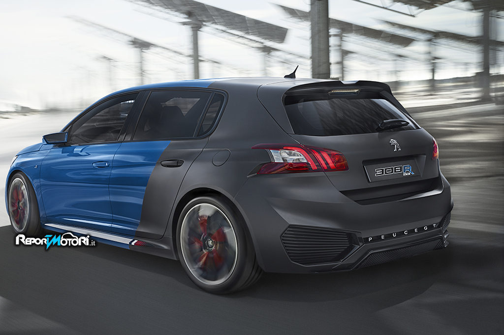 La carrozzeria, abbassata di 80 mm rispetto alla normale 308, è una quattro porte dal design originale, a cominciare dal colore, la doppia colorazione rende la Peugeot 308 R HYbrid quasi una vettura da corsa !