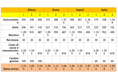 Confrontando le spese totali per il mantenimento di un’auto nelle tre città campione, Napoli rimane quella in cui tutti i profili esaminati spendono di più: le cifre arrivano anche a superare di quasi il 30% la media nazionale. È il caso del terzo profilo del giovane studente: la spesa annuale in Italia è di 2.997 euro, mentre nel capoluogo campano ne sono necessari 3.796 (+29%).