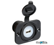 Usb-Screw è impermeabile ed è dotata di coperchio protettivo in gomma. Il precablaggio con cavo di 150cm e le viti in dotazione ne facilitano l’installazione.