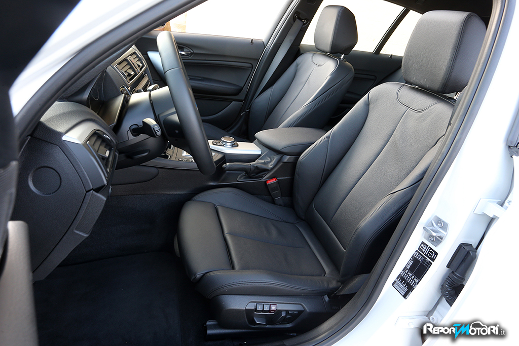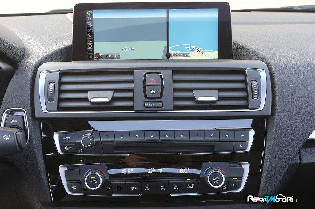 Nell’abitacolo l’equipaggiamento di serie della nuova BMW Serie 1 è stato completato con la radio BMW Professional e con il sistema di comando iDrive. La presenza del Control Display da 6,5 pollici, montato a isola in posizione centrale può essere a richiesta portato a 8,8 pollici.