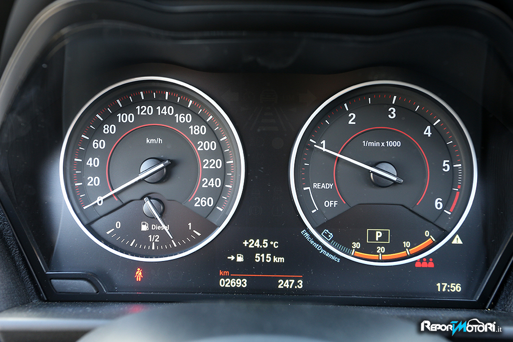 Gli interni ora sembrano quelli di una vettura di segmento superiore, i sedili, sulla versione da noi provata, presentano un elegante rivestimento in pelle, il grande monitor centrale da 8,8 pollici che ospita anche il sistema di navigazione satellitare, mostra numerose informazioni, tutte perfettamente consultabili grazie al comando iDrive posto sul tunnel centrale.