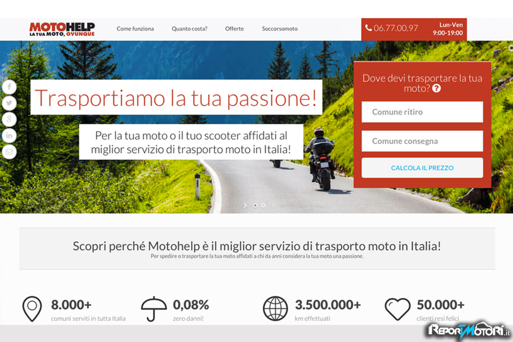 Con Motohelp si può trasportare la moto a domicilio, fino sotto casa, in totale sicurezza grazie a furgoni attrezzati esclusivamente per il trasporto delle due ruote e personale dipendente estremamente qualificato e competente che si occupa di tutte le fasi del carico della moto. Grazie al Servizio Clienti a disposizione dal lunedì al venerdi dalle 9 alle 18,30 è possibile richiedere maggiori informazioni o prenotare il servizio.