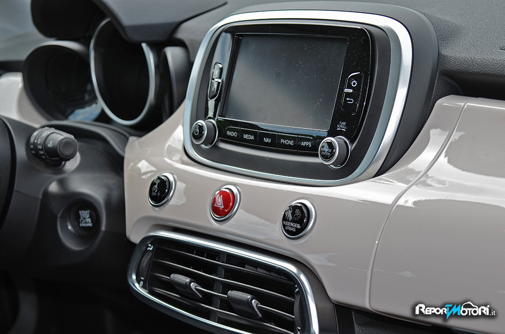 La consolle centrale ospita i comandi del pratico sistema di intrattenimento UConnect, dispositivo che comanda radio, navigatore ed applicazioni, mentre più in basso troviamo i comandi dell’efficiente e pratico climatizzatore automatico bizona .