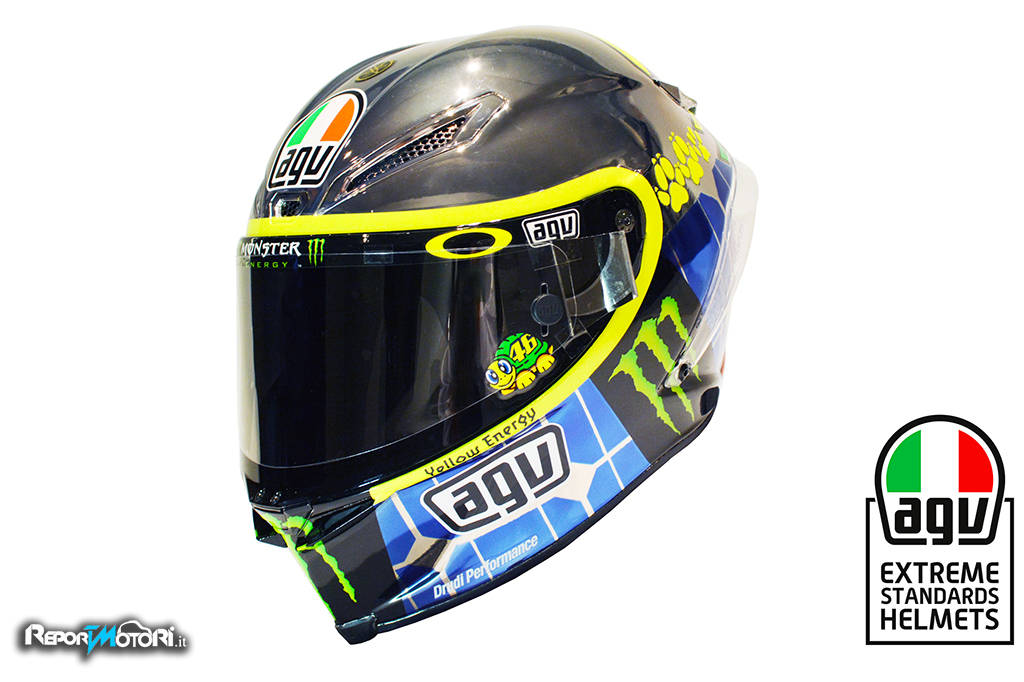 Il tema del nuovo casco di Valentino, un AGV Pista Mugello, questa volta, è l’energia green… anzi yellow!