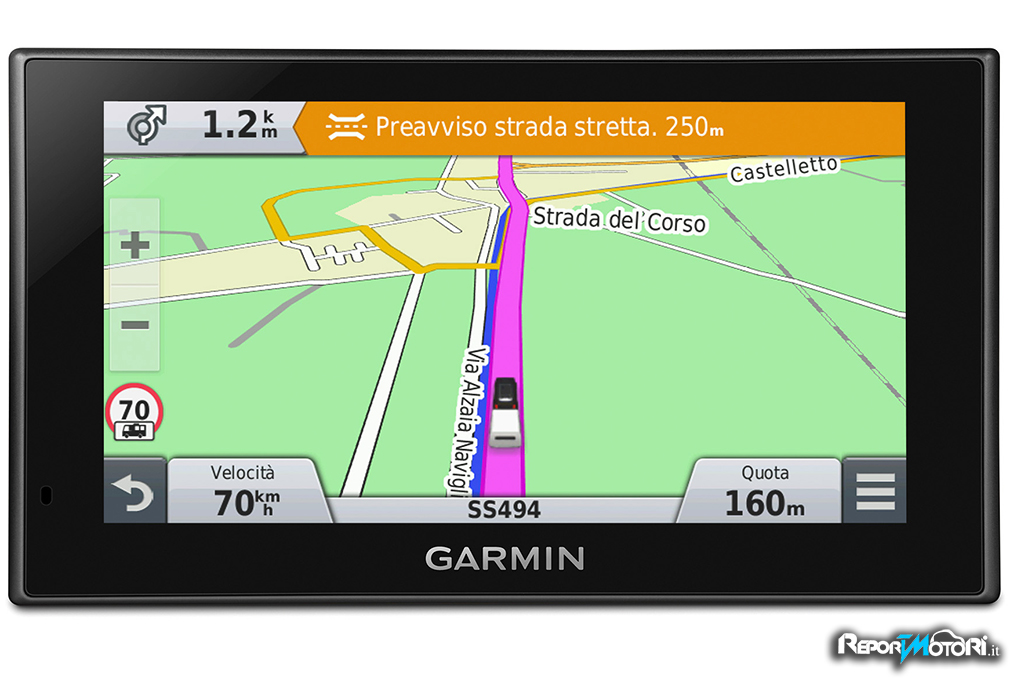 Il sistema di navigazione a comando vocale consente invece di interfacciarsi col dispositivo, dando comandi e direttive, senza dover staccare le mani dal volante e, pertanto, procedere in totale sicurezza. Sempre tramite tecnologia Bluetooth® è possibile ricevere ed effettuare chiamate associando il dispositivo al proprio cellulare. L’esclusiva funzione Garmin Real Directions fornisce infine al conducente indicazioni di guida utilizzando punti di riferimento reali e facilmente individuabili lungo la strada, come ad esempio benzinai, semafori e monumenti.