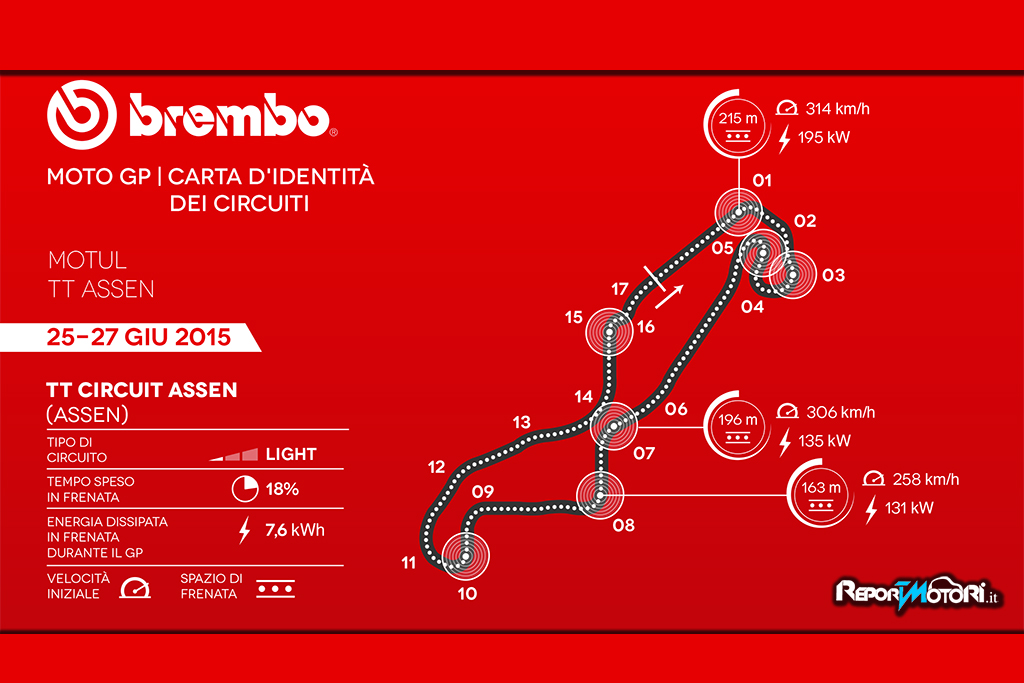 Come di consueto ecco puntuale arrivare dalla Brembo la “ Carta di Identità “ del circuito dove si svolgerà il prossimo Gran Premio del Campionato Mondiale della MotoGP, quello di Assen!