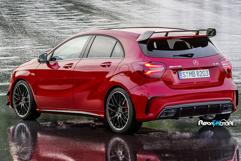 Con il facelift, la Mercedes-AMG A 45 4MATIC alza ancora l’asticella e raggiunge una potenza massima di 280 kW (381 CV) e una coppia massima di 475 Nm, confermando la ‘piccolina’ di casa Mercedes-AMG come la sportiva compatta di serie più potente al mondo. L’aumento di potenza le permette un’accelerazione da 0 a 100 km/h in soli 4,2 secondi. Rispetto al modello precedente, la nuova Mercedes-AMG A 45 accelera in 0,4 secondi in meno. Prestazioni record per un’efficienza altrettanto significativa, allo stesso livello del modello precedente: nessun’altra vettura High Performance di questa categoria può vantare consumi NEDC minimi inferiori a 6,9 litri ogni 100 chilometri (emissioni equivalenti di CO2: 162 g/km).