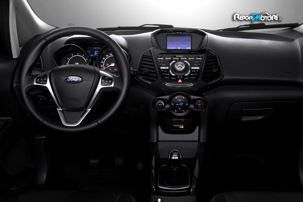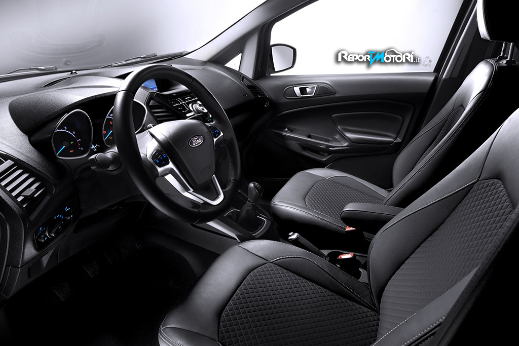 All’interno, i sedili, ora riscaldabili, sono disponibili anche con rifiniture in pelle, il volante è stato aggiornato nel design e sono state aggiunte eleganti cromature. Ford ha riposizionato la leva del freno a mano e aggiornato il design del pannello strumenti, della console centrale e dei rivestimenti delle porte. Il comfort è stato incrementato grazie alla minore rumorosità garantita dai materiali fonoassorbenti di maggiore spessore, ed è inoltre possibile dotare la EcoSport di vetri posteriori oscurati. Ford ha aggiunto alla dotazione tecnologica parabrezza e retrovisori riscaldabili, disponibili all’interno del nuovo Winter Pack. I modelli dotati del sistema di connettività SYNC si avvarranno, inoltre, di uno schermo a colori da 4”.