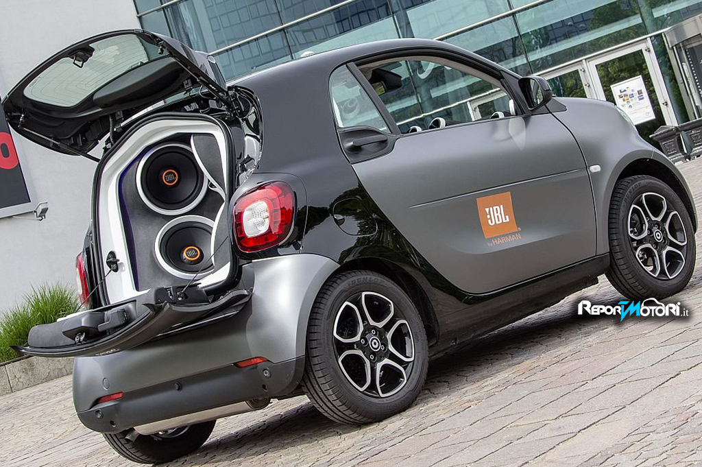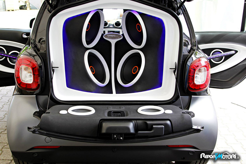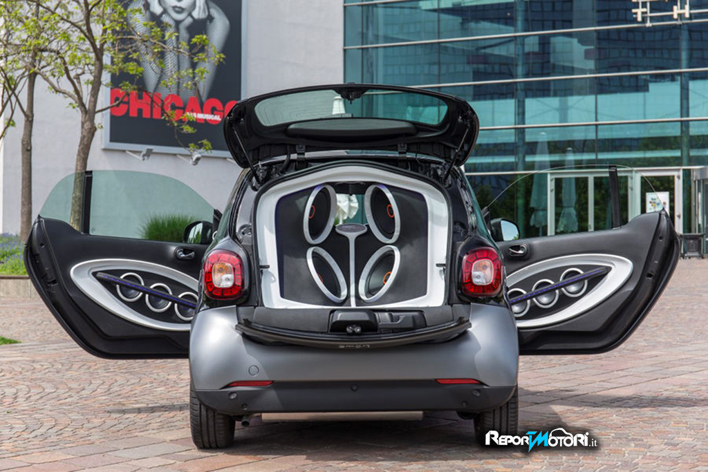 E’ stata realizzata non solo per stupire ma per dimostrare come anche un abitacolo piccolo possa diventare una vera e propria cassa acustica, capace di un suono pulito e coinvolgente: da questi presupposti nasce la nuova smart forgigs .