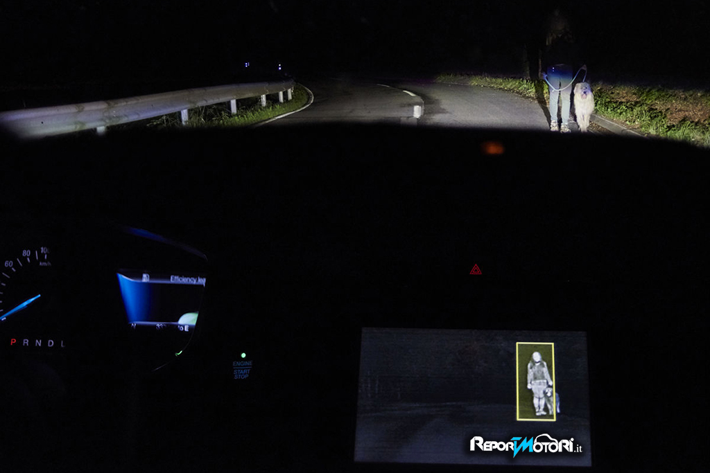 Oltre a illuminare i potenziali elementi di pericolo grazie a speciali LED direzionali installati in prossimità dei fendinebbia, questi vengono anche mostrati su schermo ed evidenziati con un rettangolo, giallo o rosso a seconda delle condizioni di rischio, aiutando il guidatore a localizzarli.