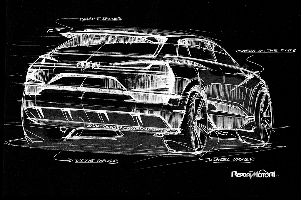 La nuova Audi e-tron concept fornisce una chiara anticipazione su ciò che realmente si vedrà sui modelli di serie, a partire dal dispositivo ” aerosthetics “, che fornisce utili soluzioni aerodinamiche senza impattare sulla linea, quali sottoscocca ottimizzato ed elementi mobili sul frontale, fiancate e posteriore: grazie a questi accorgimenti, il nuovo SUV tedesco vanta una efficienza aerodinamica pari a 0.25 !