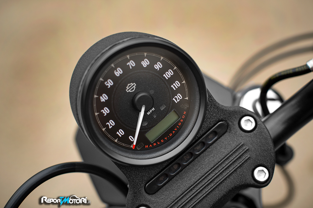 I colori e le finiture dell’Iron 883 sono stati scelti per nascondere i sassolini e il nero della strada che si raccolgono guidando e vivendo in un ambiente urbano, per biker che non possiedono, e non si preoccupano di possedere, né una canna da giardino né tantomeno un vialetto d’accesso.